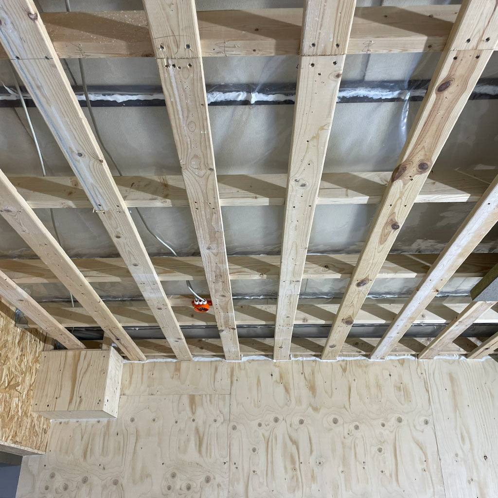 Samtidig bevares loftets arkitektoniske udtryk med en glat, fugefri finish, der kan repareres, vedligeholdes, slibes og transformeres over tid.